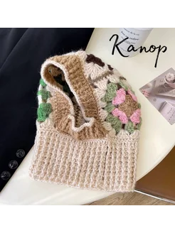 Капор женский вязаный зимняя шапка