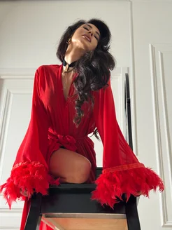Халат кимоно домашний шелковый с запахом