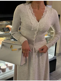 Кардиган из кашемира теплый с кружевом premium
