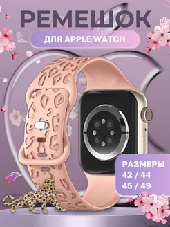 Ремешок для Apple Watch 42, 44, 45, 49 мм леопард розовый