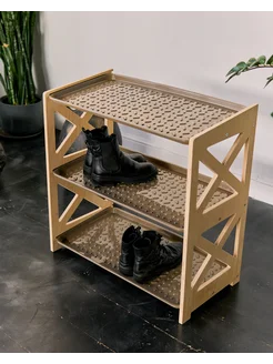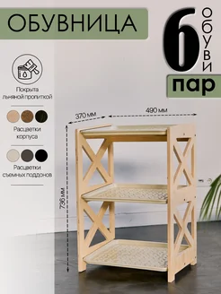 Обувница деревянная не крашенная с поддоном 3 полки широкая