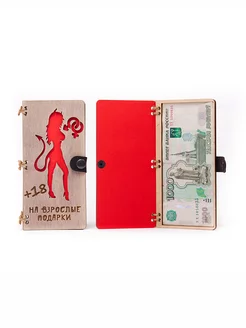 Конверт деревянный " На взрослые подарки " 18+ красная