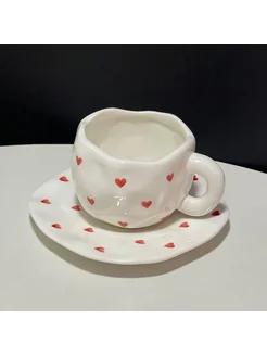 Чайная пара, набор кружка и блюдце с сердечками 300 мл