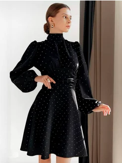Платье вечернее короткое с длинными рукавами фонарь на осень