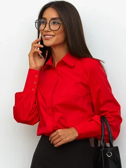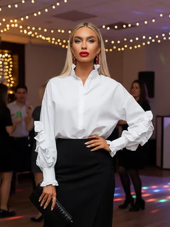 Рубашка женская белая офисная приталенная блузка с рюшей