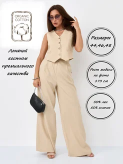 костюм льняной брючный с жилеткой двойка