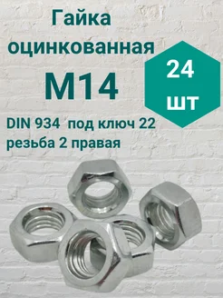 Гайка оцинкованная М14 резьба 2 DIN 934 24шт