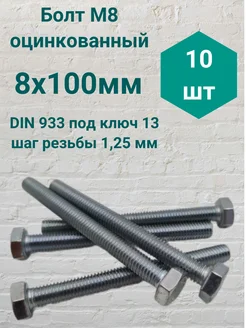 Болт М8 оцинкованный DIN 933 8х100мм (10 шт)