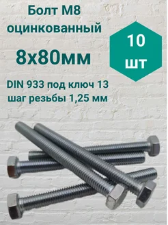 Болт М8 оцинкованный DIN 933 8х80мм (10 шт)