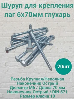 Шуруп для крепления лаг 6х70мм глухарь 20шт