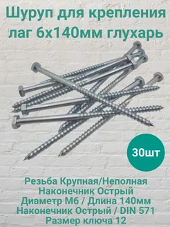 Шуруп для крепления лаг 6х140мм глухарь 30шт