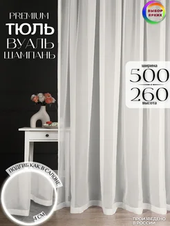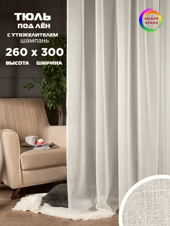Длинный тюль под лен 500х260 см белый с утяжелителем