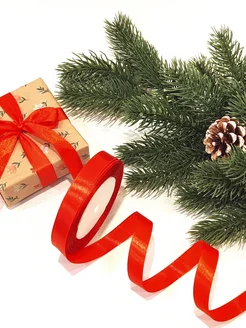 лента атласная красная для бантов и упаковки