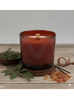Аромасвеча ветивер, лайм, бергамот с деревянным фитилем