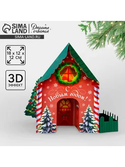 Открытка с новым годом, объёмная 3D, «Новогодний домик»