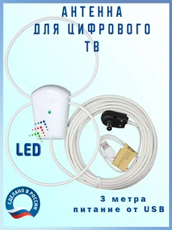 Антенна для телевизора комнатная, с усилителем, от USB, 3м