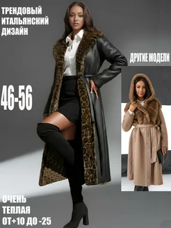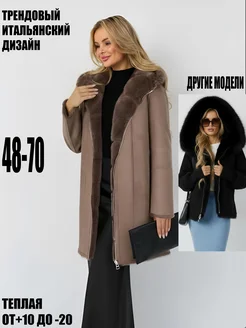 Дубленка двусторонняя c капюшоном длинная зимняя эко овчина