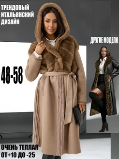 Дубленка двусторонняя с капюшоном длинная зимняя