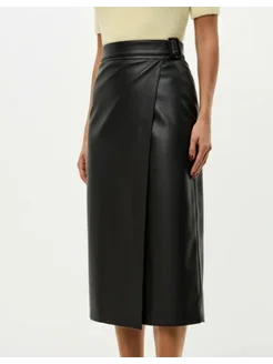 Юбка кожаная карандаш миди на запах