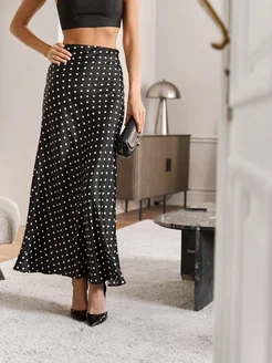 Юбка атласная макси в горох