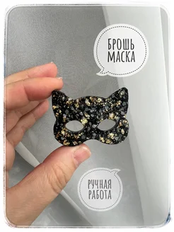 Брошь маска кот аксессуар подарок коллеге, бижутерия кошка