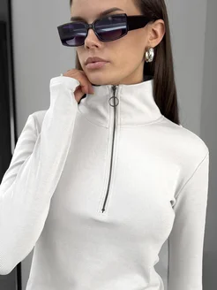 Лонгслив облегающий в рубчик с вырезом и молнией