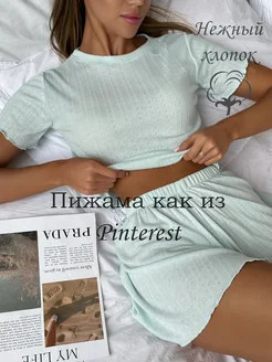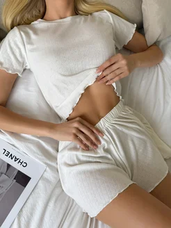 Пижама с шортами и футболкой хлопковая домашний комплект