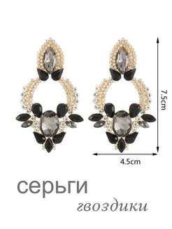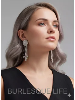 Серьги длинные вечерние люстра стразы нарядные пусеты