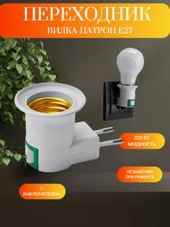 Переходник вилка лампочкам Е27 гибкий с выкл