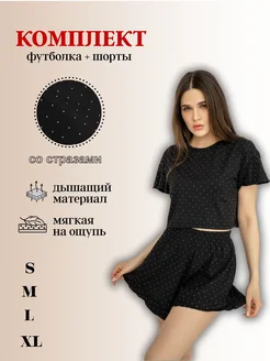 Пижама с шортами стразы