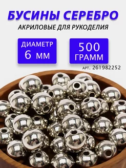 Бусины круглые 6 мм серебро уп.500 г