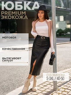 Юбка кожаная миди с разрезом