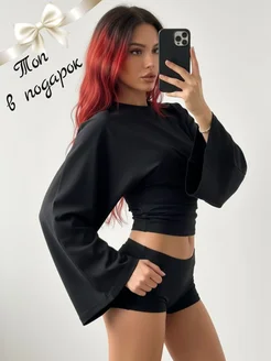 Лонгслив облегающий с широкими рукавами летучая мышь