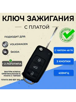 Корпус ключа зажигания для автомобиля VW Skoda 3 кнопки