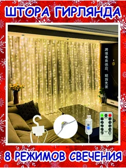 Гирлянда штора ширина 3м высота 2м с пультом белая
