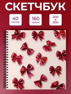 Скетчбук для рисования квадратный на кольцах Бантики 3Д
