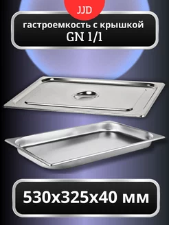 Гастроемкость с крышкой 53х32,5х4 см из нержавеющей стали