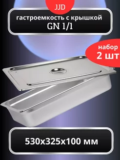 2 шт гастроемкости с крышками 53х32,5х10 см из нерж. стали