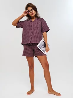 Домашний костюм пижама с шортами и рубашкой Оверсайз