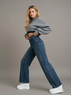 Джинсы бананы с высокой посадкой багги LOLOBLUES