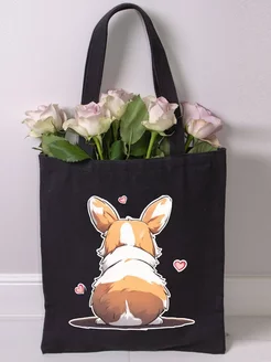 Шоппер на молнии с принтом черный Корги