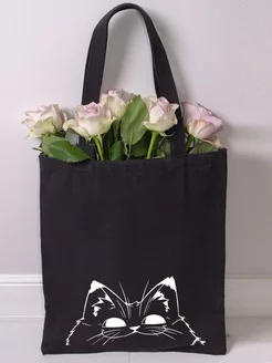 Шоппер на молнии с принтом черный с Котом