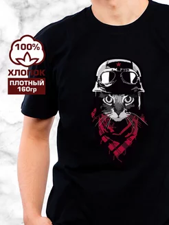 Футболка с принтом кот байкер