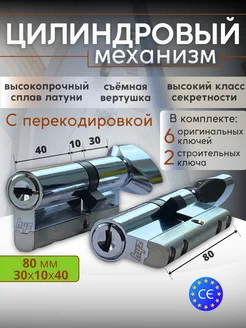Личинка замка дверная 80 мм (30х10х40) с перекодировкой