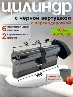 Личинка замка с черной вертушкой 100 мм (40х10х50) дверная