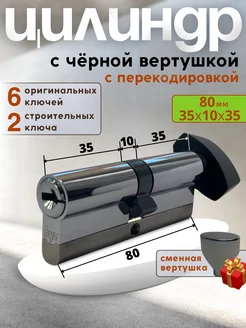 Сердцевина на дверь 80 мм (35х10х35) поворотка с ключами