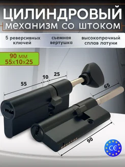 Личинка замка для двери черная 90 мм ( 55х10х25 )