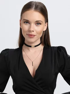 Чокер черный с подвеской золотистый