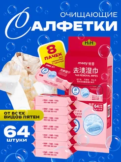 Салфетки от пятен на одежде влажные пятновыводящие 64 штуки