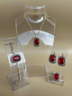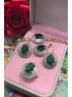 Серьги,кольцо,кулон,браслет комплект с зеленым камнем